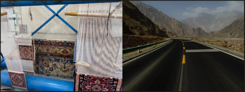 (L): Khotan. In the – Carpet – Silk Road ; (R): On the road to Pamir land