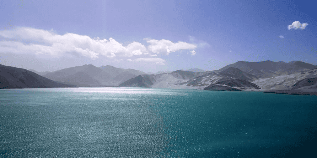 XINJIANG. Karakoram Highway. BRI/CPEC connectivity corridor. White Sand lake – on the way to Pamir lands