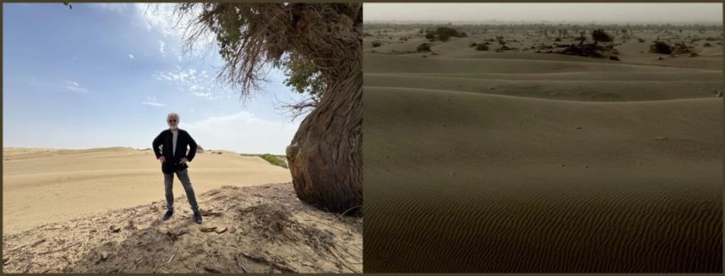 In the heart of the Taklamakan desert. (L): the pilgrim finally made it ; (R): The fierce beauty of the Taklamakan