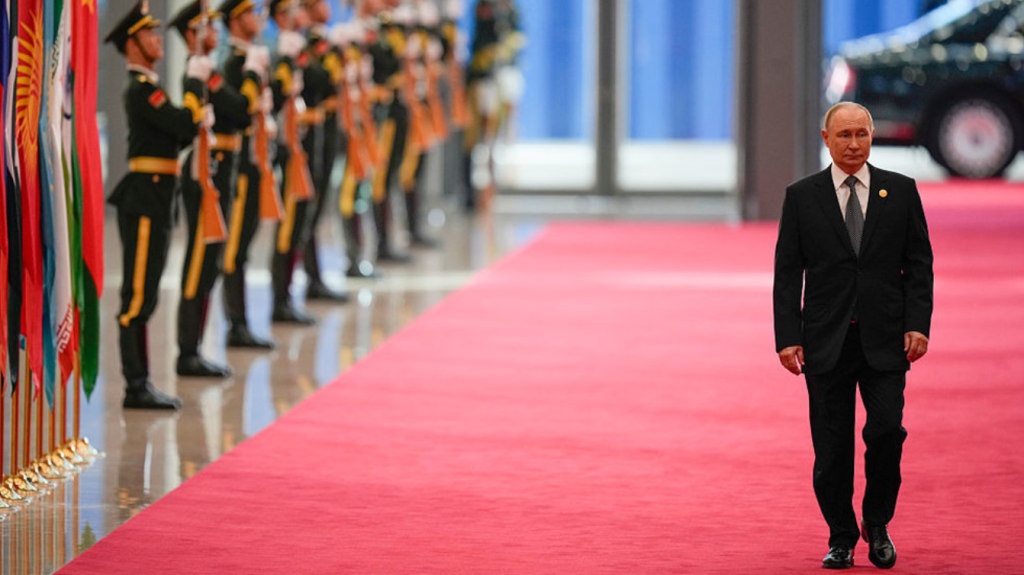 Russian President Vladimir Putin arrives for the Shanghai Cooperation Organization (SCO) Summit on September 1, 2025 in Tianjin, China. © Getty Images/Suo Takekuma