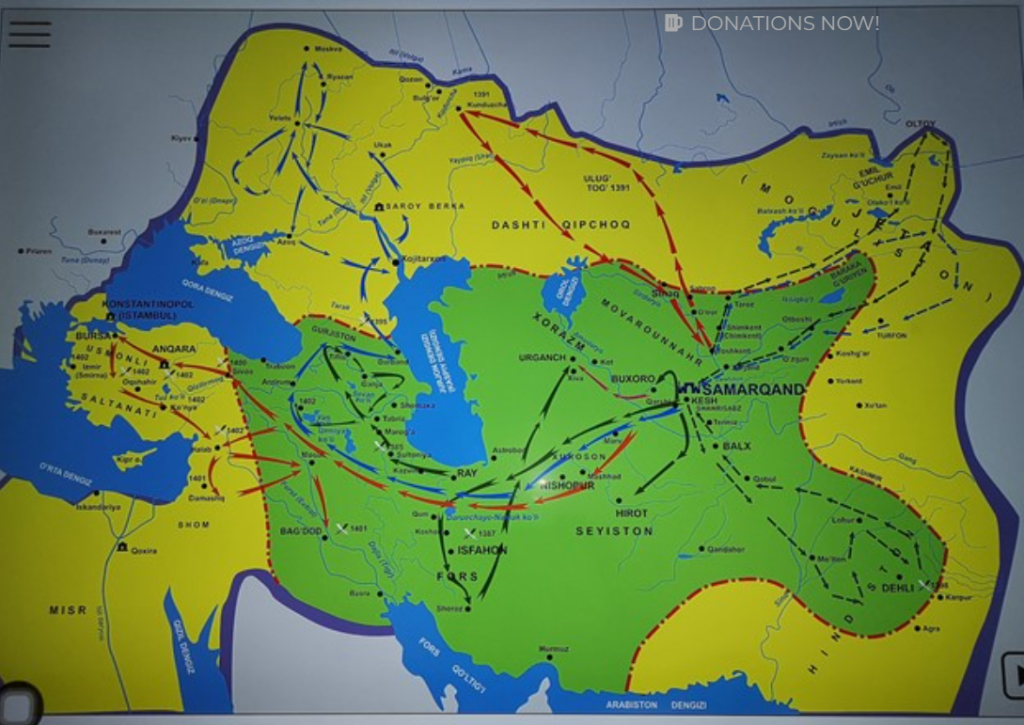 So Timur was an objective ally of the West. Certainly not a danger. Besides, he was very strong on diplomacy. Before the One Hundred Year War destroyed his kingdom, Charles VI of France received a letter written in gold leaves and bearing Timur’s seal: three circles that symbolize the conquest of the Universe. Timur wanted a trade deal. In the end, because of European incompetence, it came down to nothing.