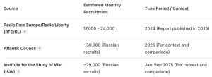Like a bad Italian opera, the fat lady is singing from a balcony overlooking a city that is ablaze. Zaporhyzhia, Dneipropetrovsk, Donetsk, Kherson, Kharkiv, Sumy… The Russian ground forces are attacking in all of these locations, which represents about 1,000 miles of territory stretching from Sumy in the north to Zaporhyzhia in the south. Russia is inflicting an average of 1,335 casualties a day on the Ukrainian forces, which translates into 456,695 losses in 2025 as of November 17. That is almost 40,000 per month. Add to that an estimated 20,000 to 40,000 desertions each month… That means Ukraine must recruit a minimum of 60,000 new conscripts each month just to maintain its current troop strength. That ain’t happening (see chart above).