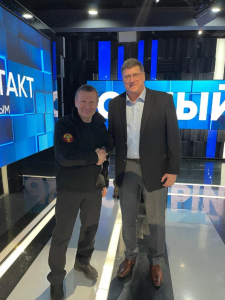 The Author (right) shakes hands with Vladimir Solovyov (left), Moscow, January 2024