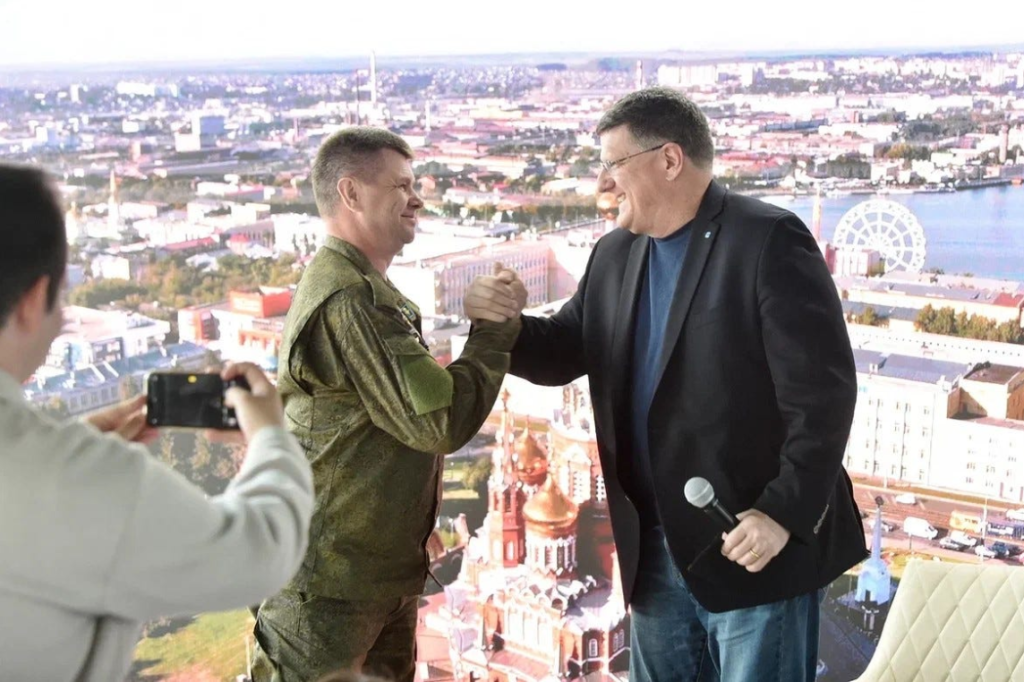 The Author shaking hands with a Russian veteran, Izhevsk, May 2023