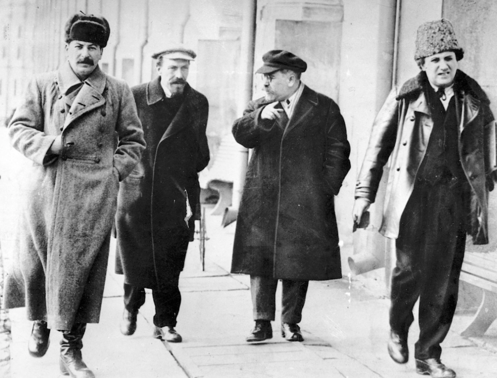 Soviet leadership in April 1925. On the photo taken in Kremlin: Joseph Stalin, General Secretary of the Communist Party. Alexei Rykov, Chairman of the Council of People’s Commissars (Prime Minister). Lev Kamenev, Deputy Chairman of the Council of People’s Commissars (Deputy Prime Minister). (Krasnay Niva issue 17 Apr 19 1925. Magazine published and edited by Anatoly Lunacharsky and Yuri Steklov. Author Nikolai Petrov (1875-1940)/Wikipedia Commons)