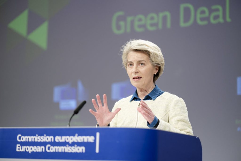 EU Commission President Ursula von der Leyen talks to the media in Brussels. February 1, 2023. © Thierry Monasse/Getty Images