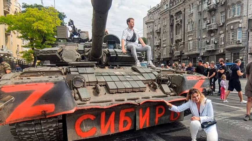 By the end of Friday, armed Wagner convoys were in Rostov (bearing the red Z mark) and had taken control of several military offices in what amounted to a bloodless coup of the city. The scenes were a bit outlandish - tanks on the city streets and security cordons around key facilities, but seeming indifference from the population. People mingled among the Wagner troopers, street sweepers went about their work, Wagner bought cheeseburgers, and people took pictures with the tanks.
