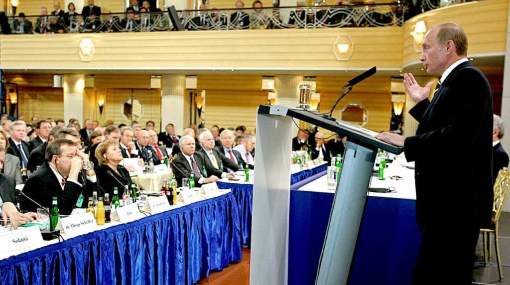 Putin addressing the Munich Security Conference in 2007. (Kremlin.ru, Wikimedia Commons, CC BY 4.0)