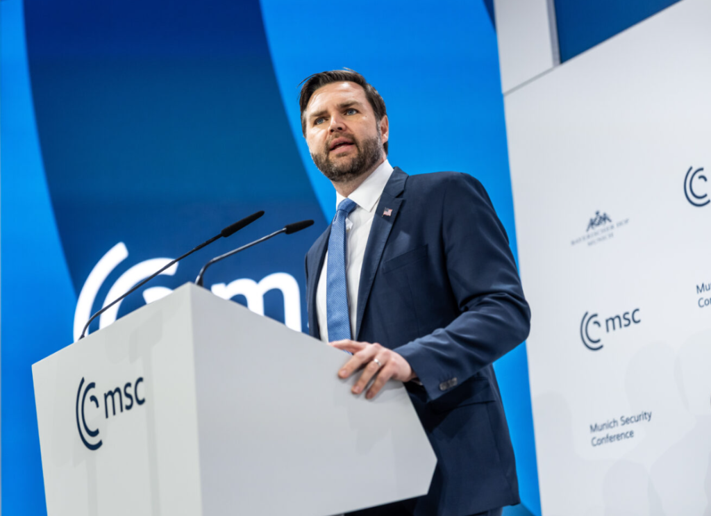 U.S. Vice President J. D. Vance addressing the Munich Security Conference on Feb. 14. (Courtesy MSC/ Lennart Preiss)