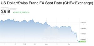 The US dollar is also losing value. As an extreme example, I show here the exchange rate of the US dollar against the Swiss franc.