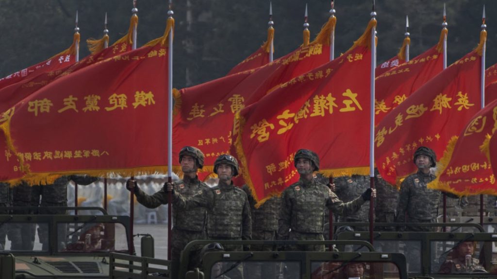 FILE PHOTO: Chinese soldiers ride in jeeps as they drive in a parade to celebrate the 70th Anniversary of the founding of the People's Republic of China in 1949, at Tiananmen Square on October 1, 2019 in Beijing, China. © Kevin Frayer / Getty Images